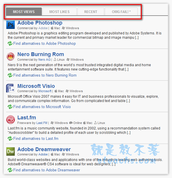 有不少套免費的超盛行,甚至比付費的更好用,更新更快,不過有時候想要找某功能的免費軟體還真不知道從何下手,最近愈來愈多人推《AlternativeTo》這個網站服務,介紹了非常多的免費軟體,還可以知道每個軟體有什麼替代方案,整個很方便,丫湯最近也一直在逛這個網站,挖了不少寶啦。