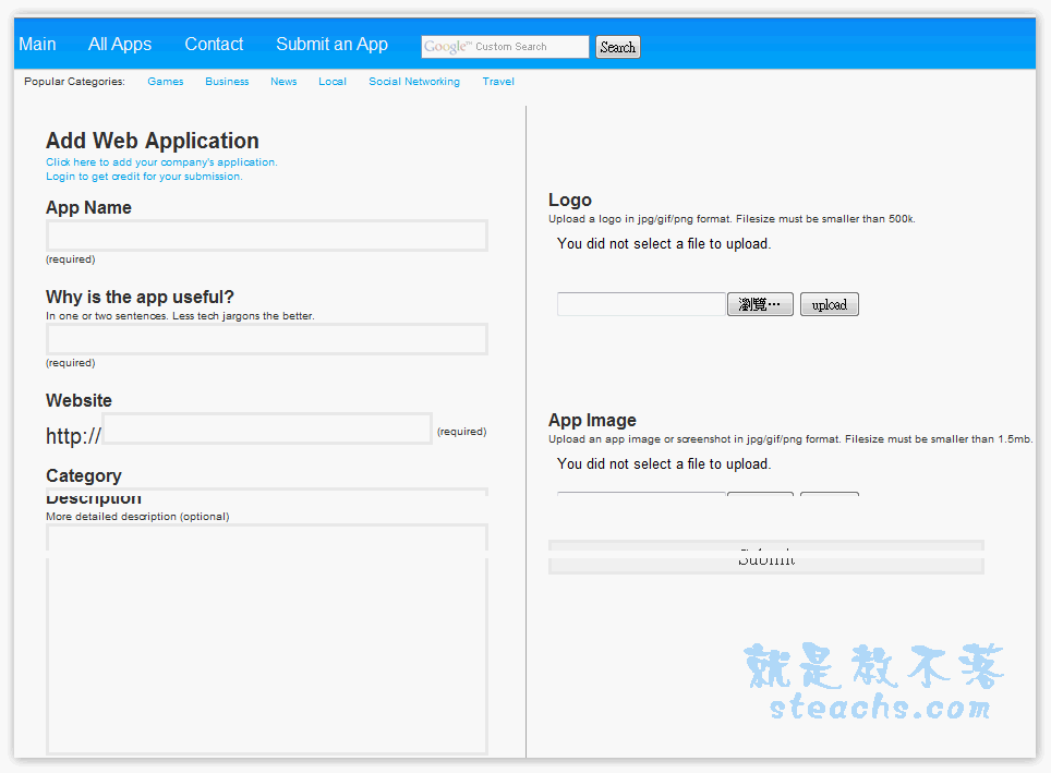 Submit an App來提交網站,