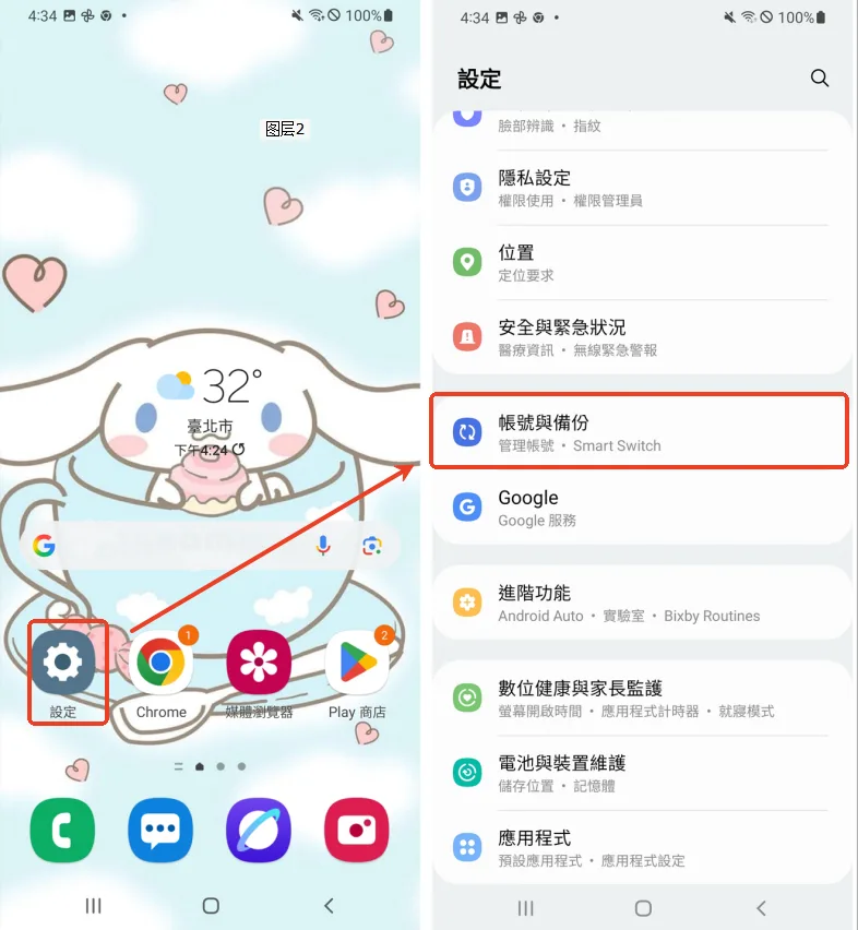 帳號與備份」