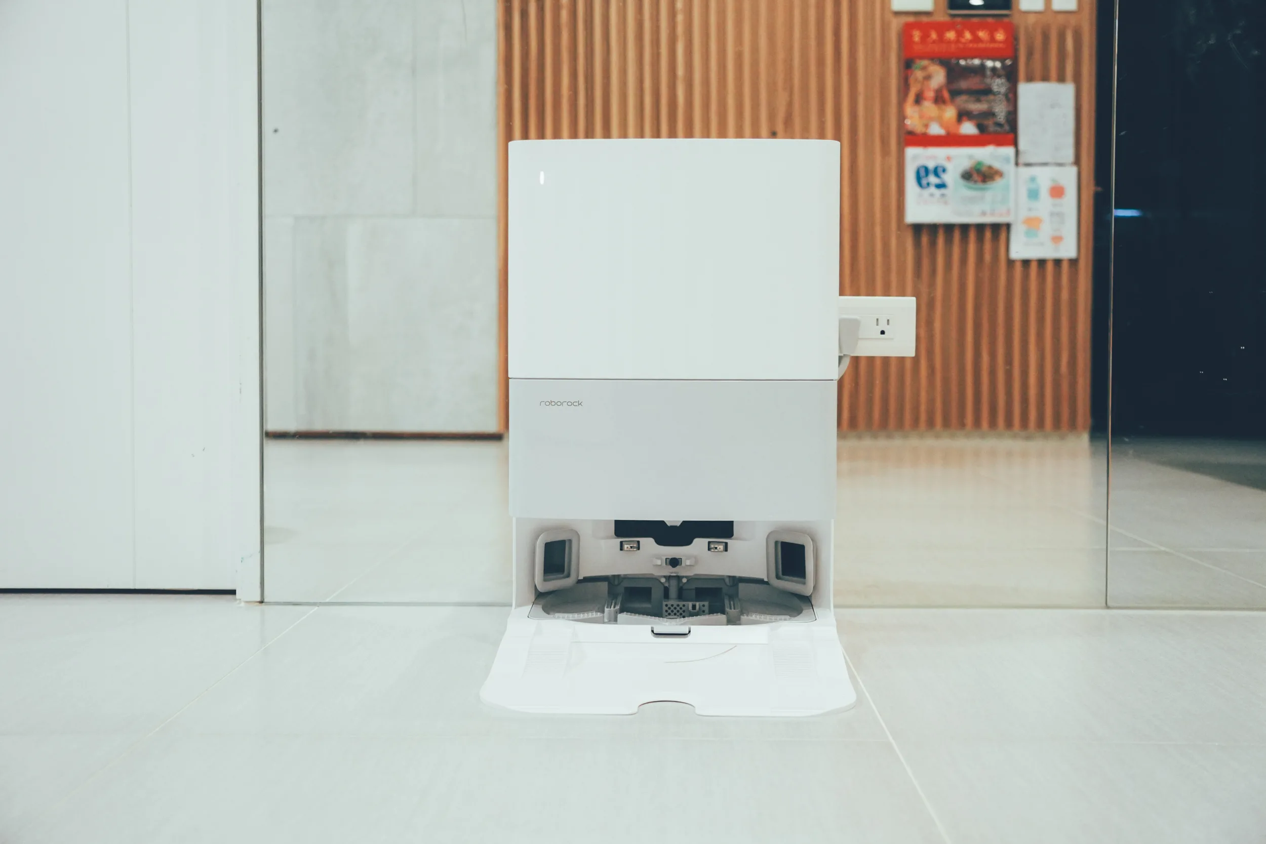 「自動補水」功能也相當實用。基座內建了大容量的清水箱,當機器人的水箱水量不足時,會自動回到基座補充清水。這樣的設計讓機器人能夠完成大面積的拖地作業,不會因為水量不足而中途停止。