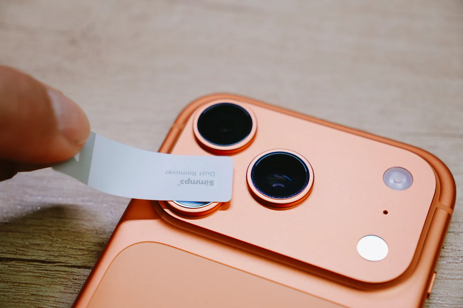 清潔完直接開貼,只要對準三顆鏡頭壓下去,然後用手指稍微按一按,就可以拔開。