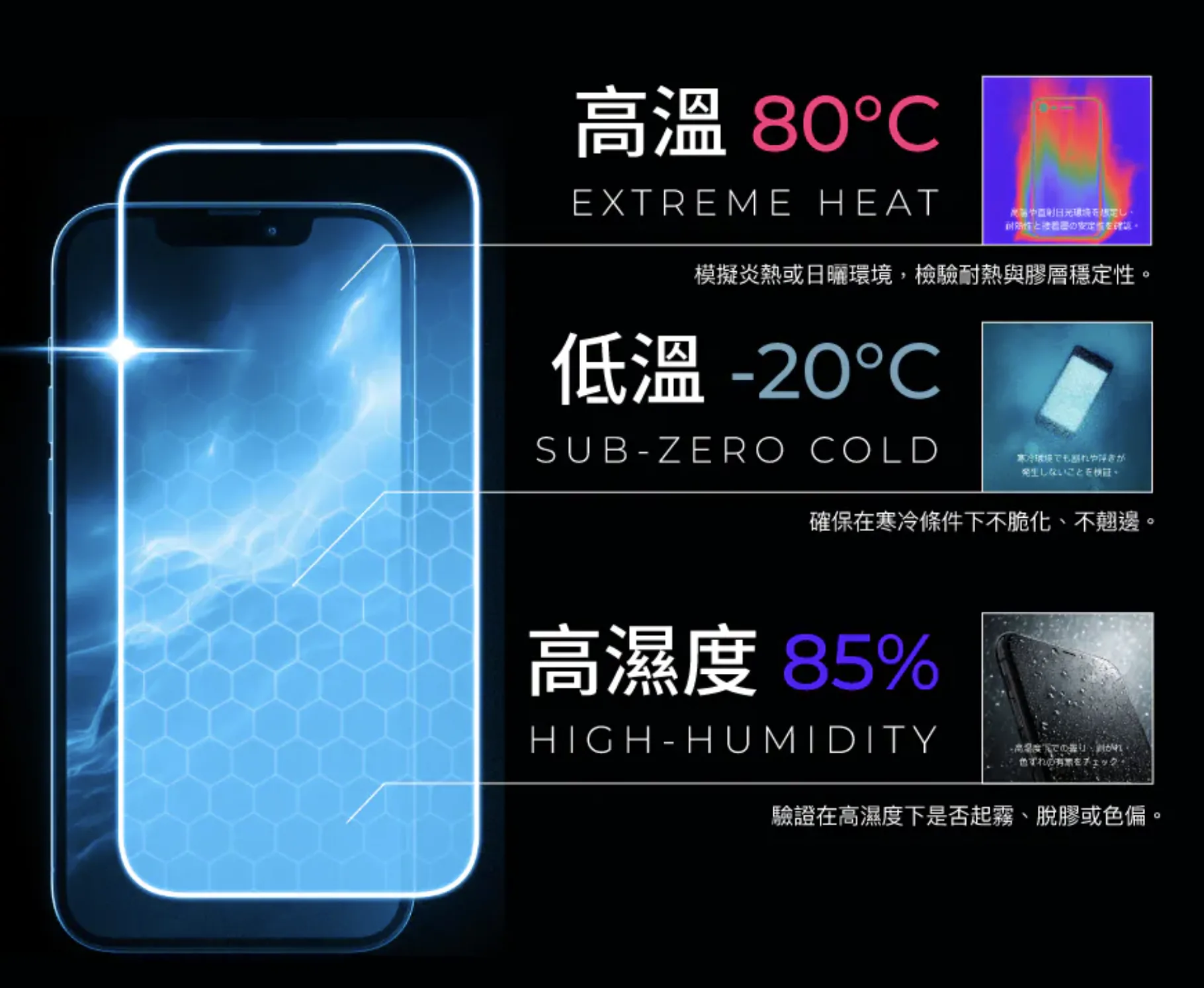 更是經過耐高溫、低溫以及高濕濕度的環境測試,去哪都沒問題。