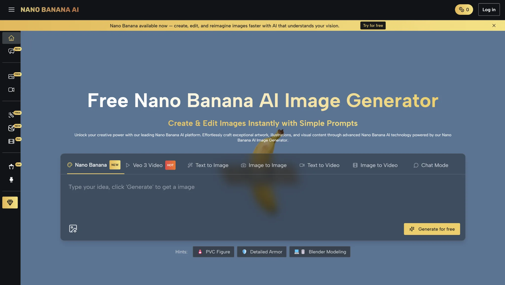 Nano Banana模型。在這裡,您可以體驗官方提供的免費Nano Banana AI圖像生成服務。