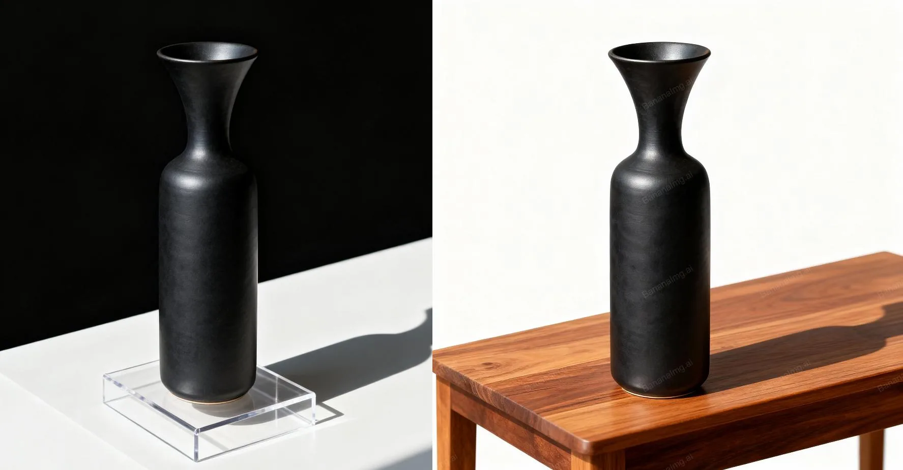 Studio shot of the product, elegantly positioned on a [background], soft ambient shadows, smooth gradient backdrop, high-key lighting, shallow depth of field, ultra-sharp focus on the subject, subtle reflections, minimal aesthetic, professional DSLR, premium commercial lighting setup, optimized for high-end product presentation.