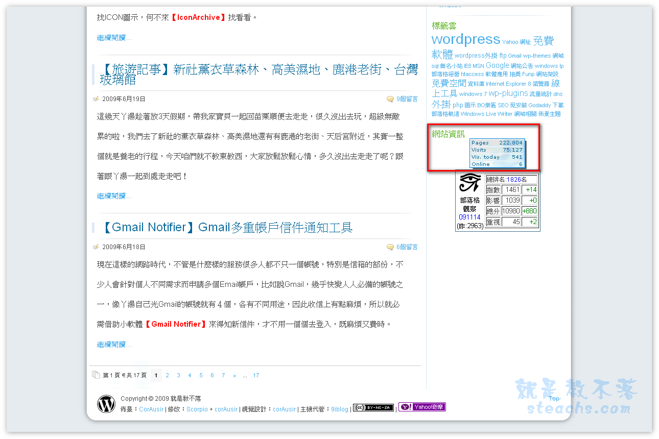 將畫面拉至部落格計數器處,以